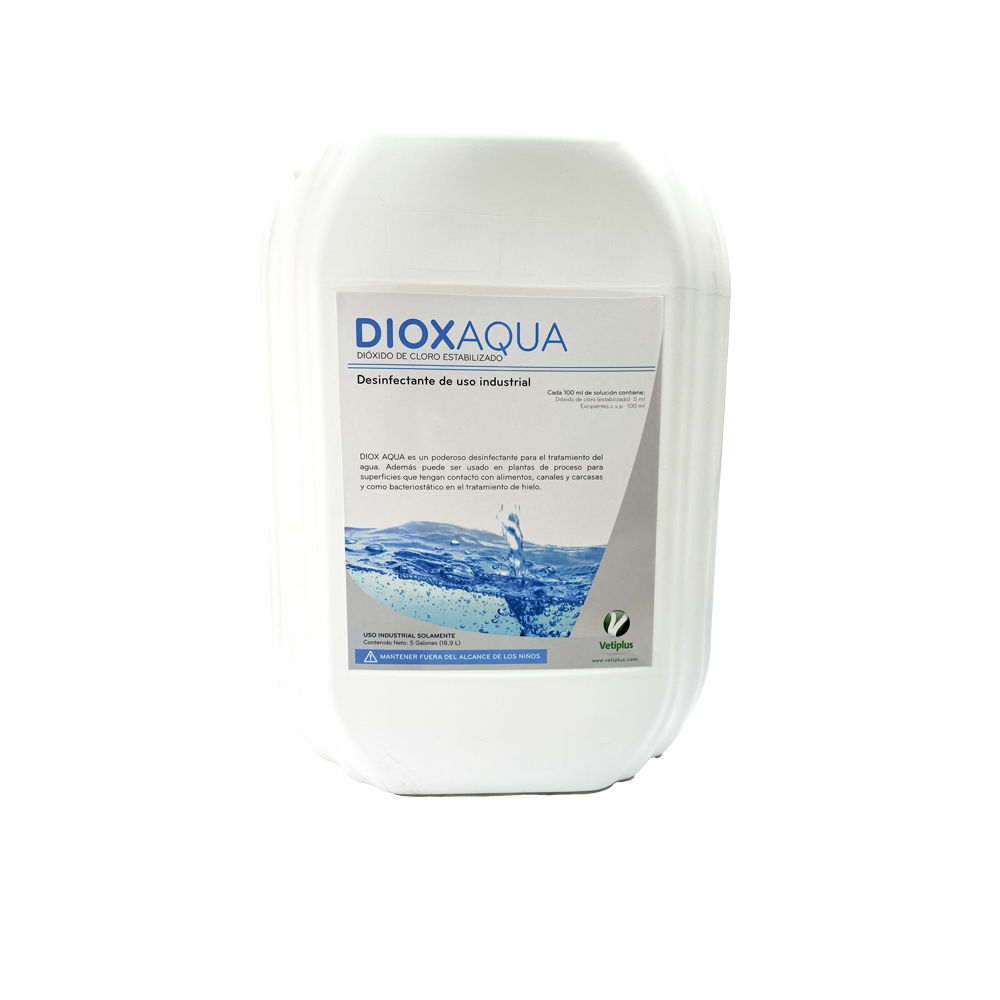 Desinfección del agua potable para animales, bacteriostático para el tratamiento del hielo en plantas de proceso, desinfección de canales y superficies en plantas de beneficio y desinfección de superficies en granjas.